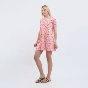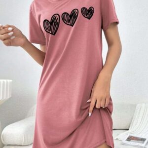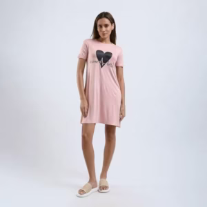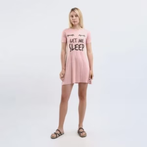 نايت شيرت قطن نص كم استريتش مطبوع -روز