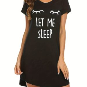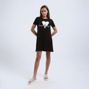 نايت شيرت قطن نص كم استريتش بطبعه -اسود