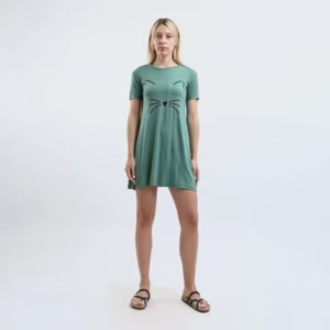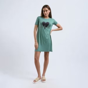 نايت شيرت قطن نص كم استريتش بطبعه -مينت جرين