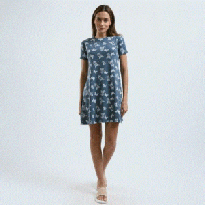 نايت شيرت قطن نص كم استريتش بطبعه -ازرق