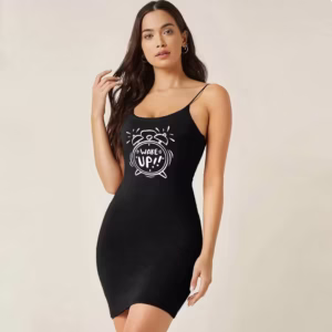 نايت شيرت قطن استريتش حماله رفيعه مطبوع – اسود