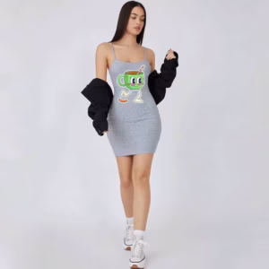 نايت شيرت قطن استريتش حماله رفيعه مطبوع – رصاصي