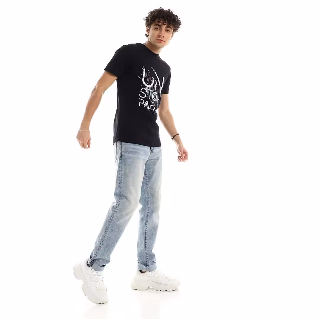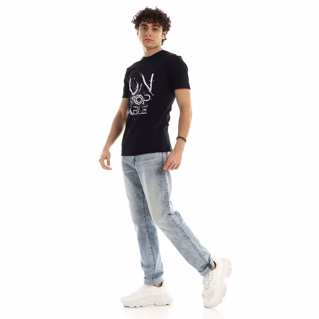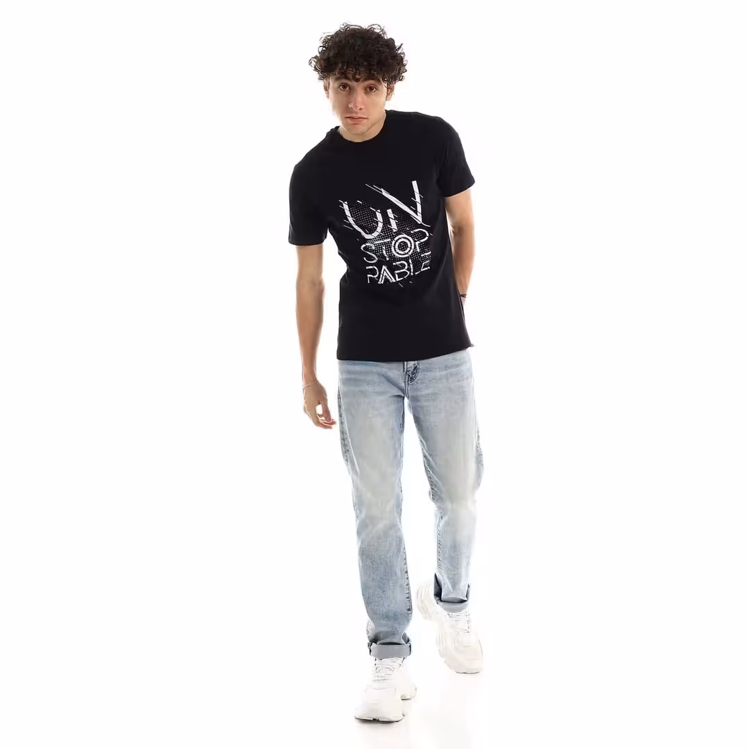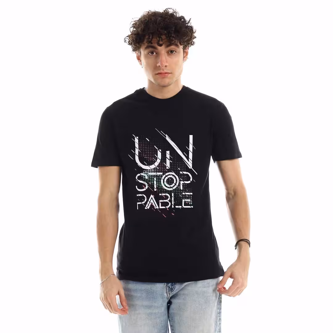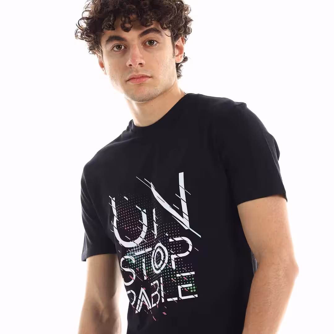 تيشرت رجالي نص كم حوض قطن – اسود
