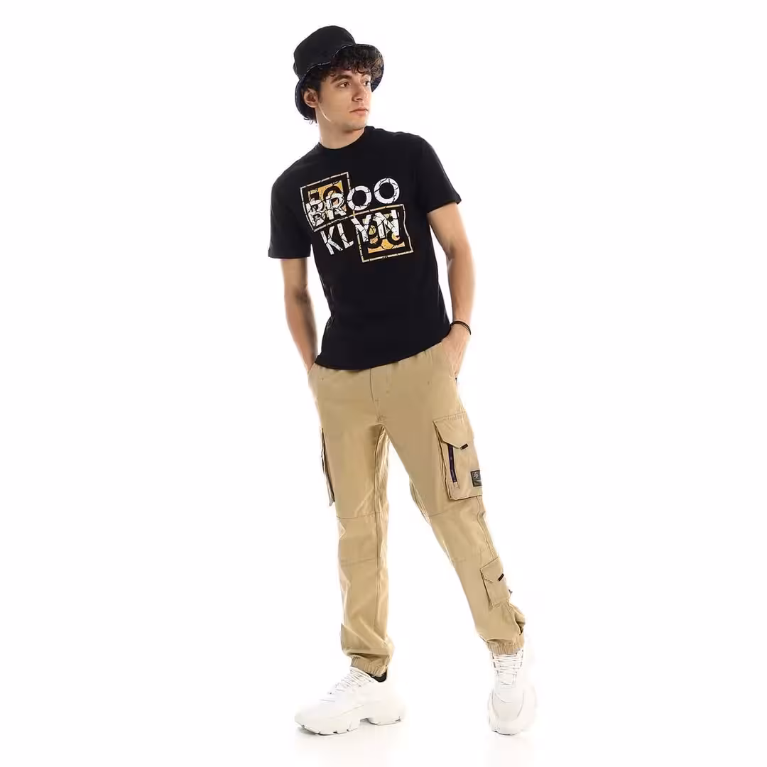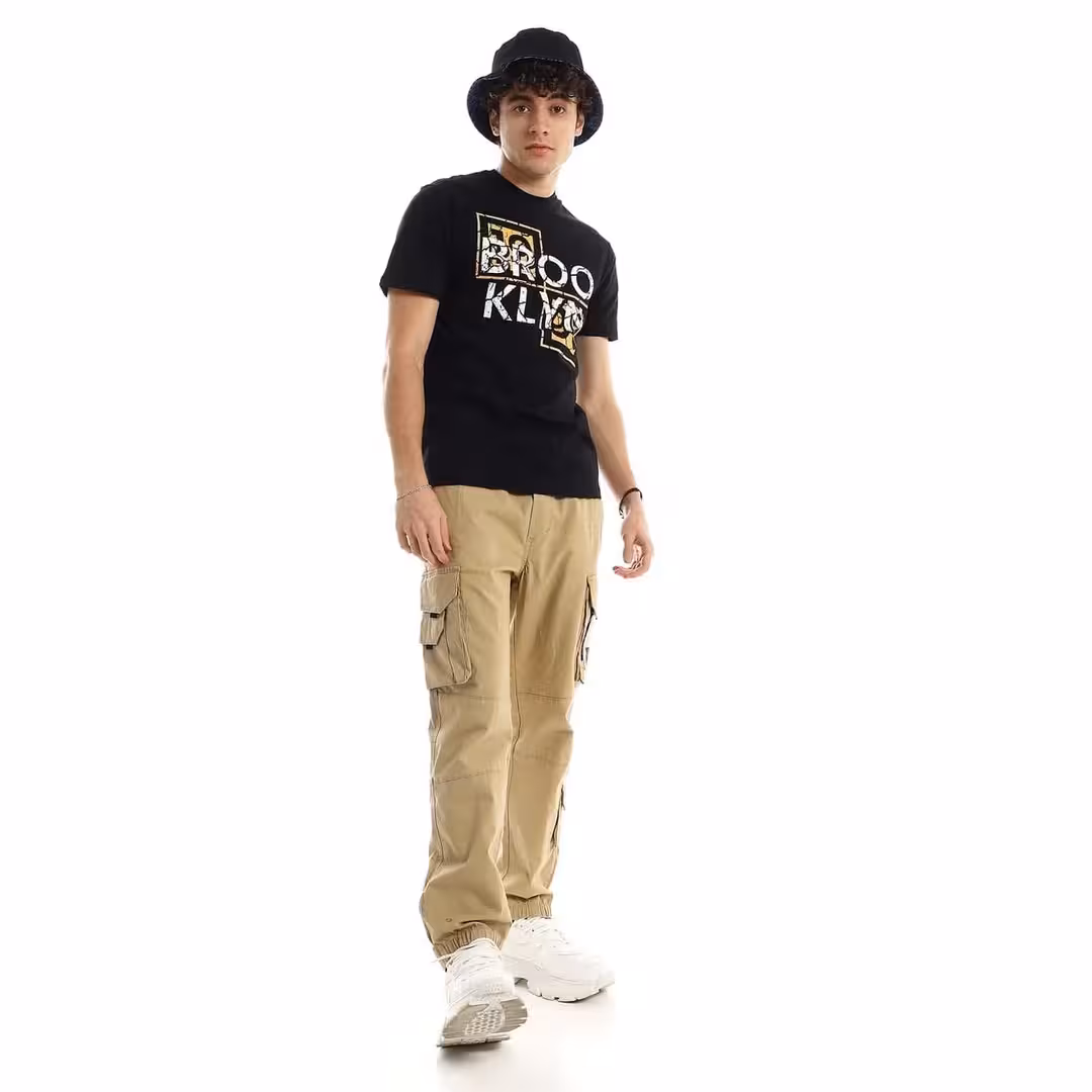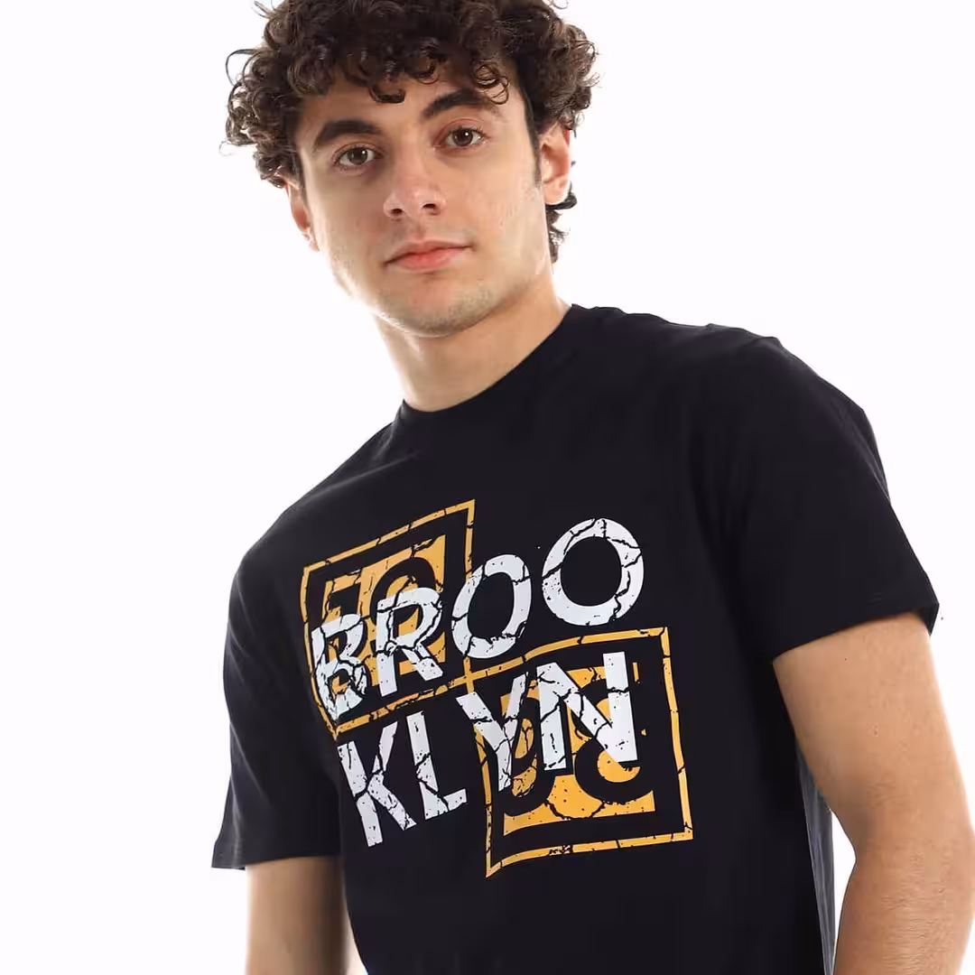 تيشرت رجالي نص كم حوض قطن - اسود