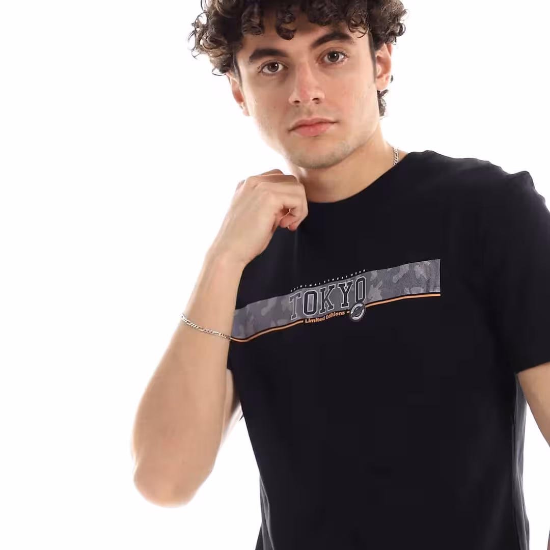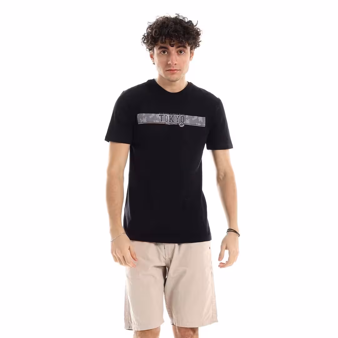 كاش مايو قصير من القطن حماله رفيعه -مطبوع-اسود