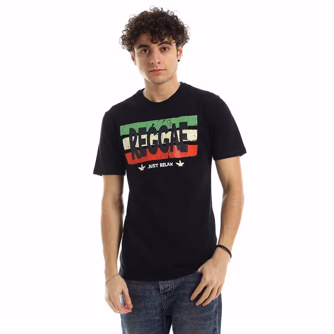 تيشرت رجالي نص كم حوض قطن – اسود