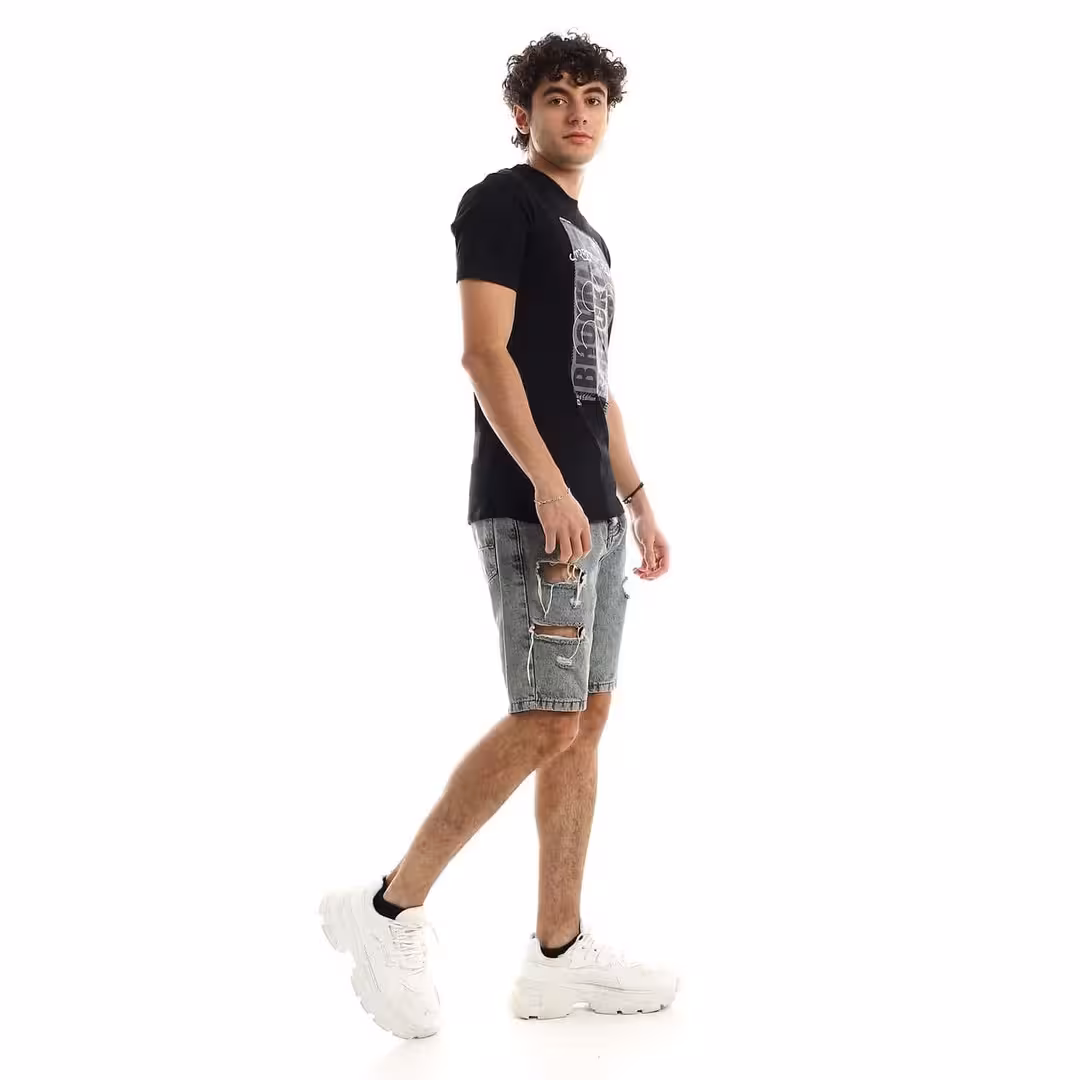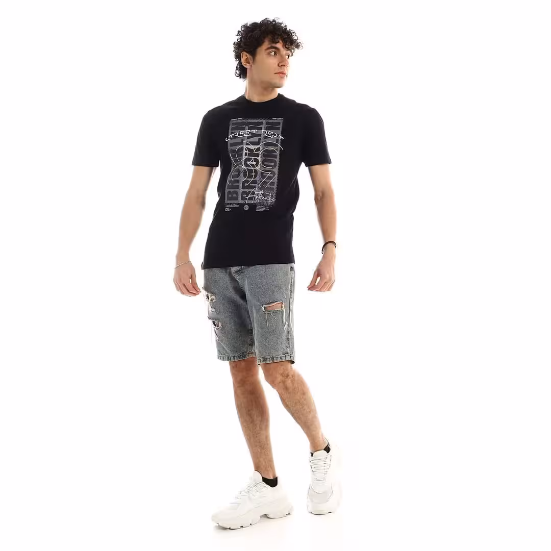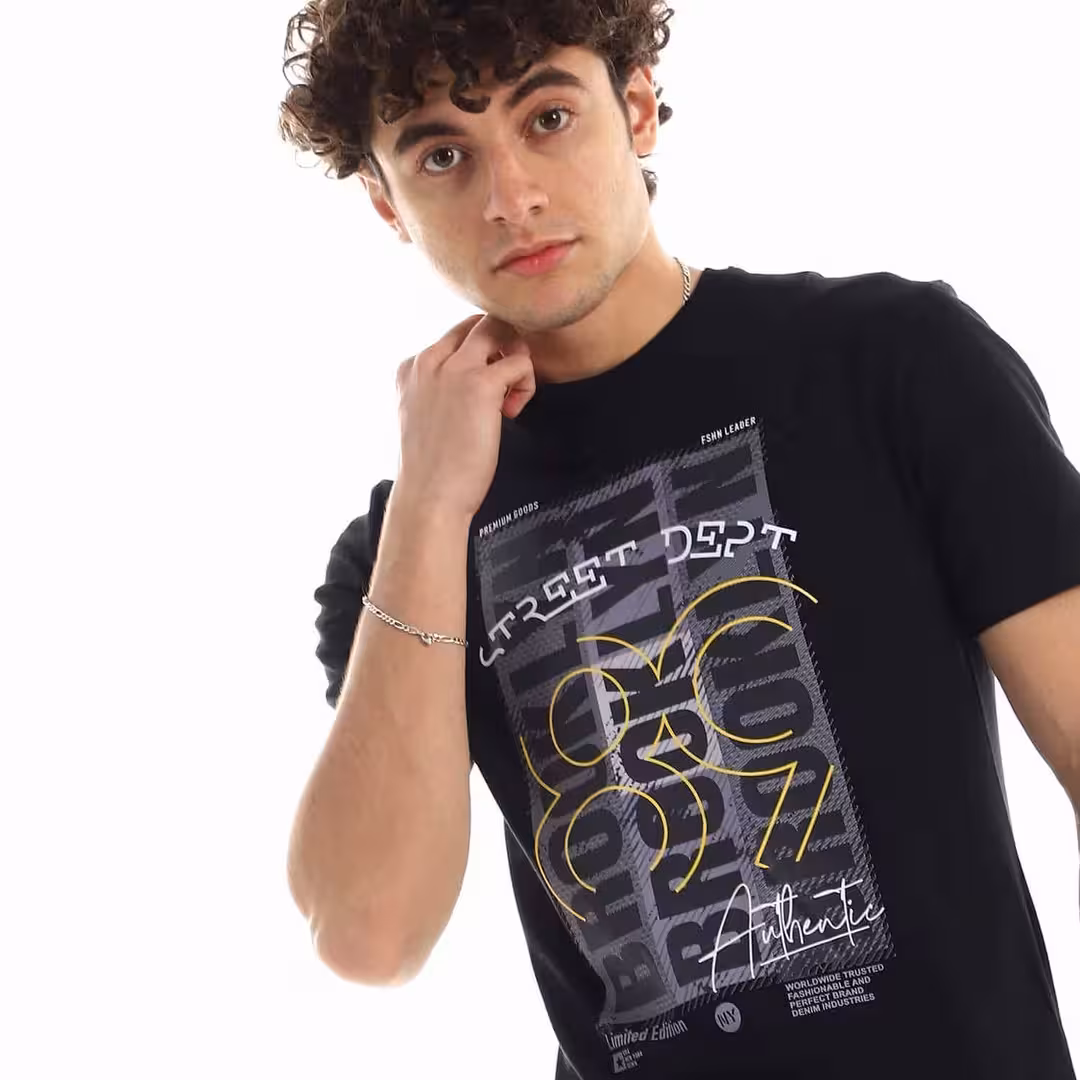 كاش مايو قصير من القطن حماله رفيعه -مطبوع-اسود