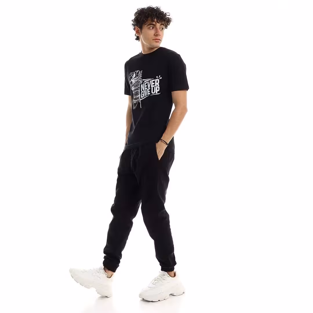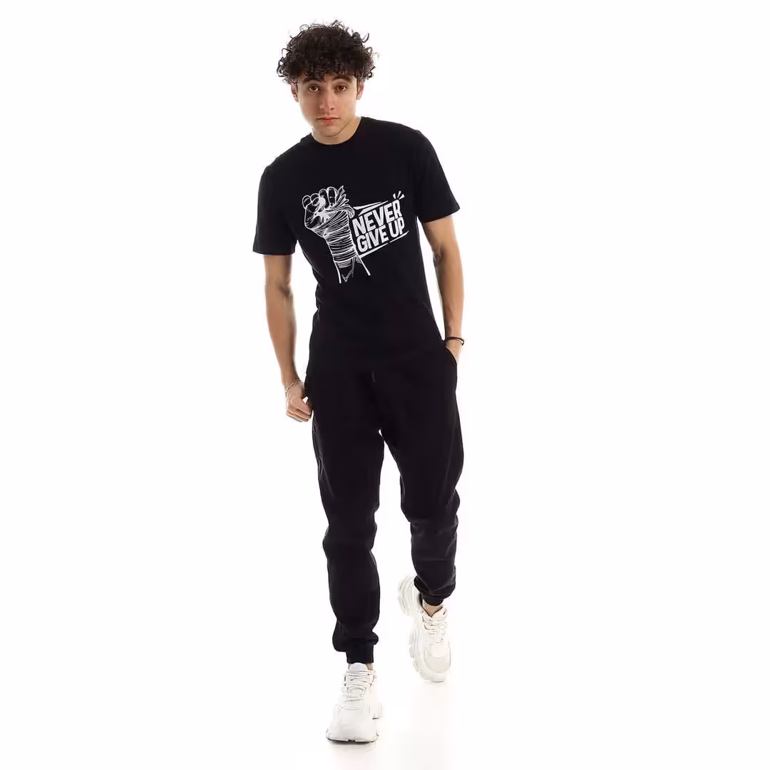 كاش مايو قصير من القطن حماله رفيعه -مطبوع-اسود