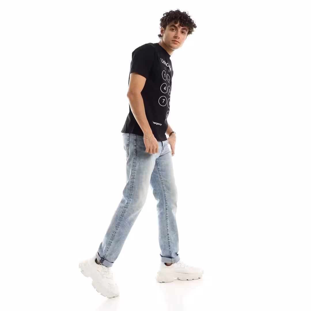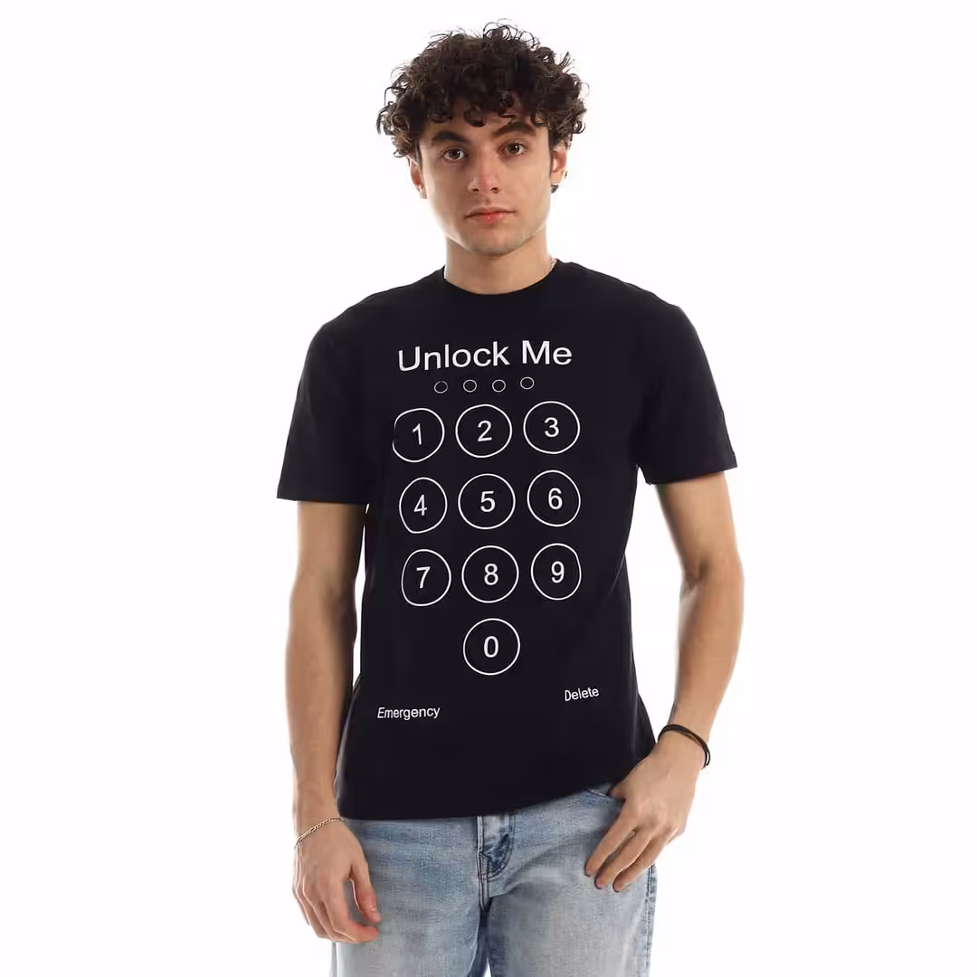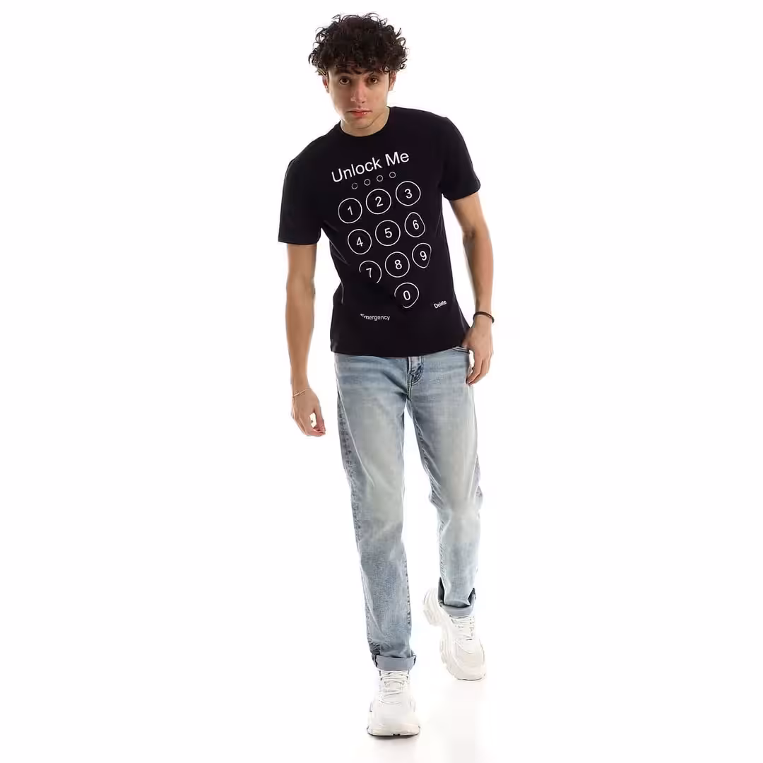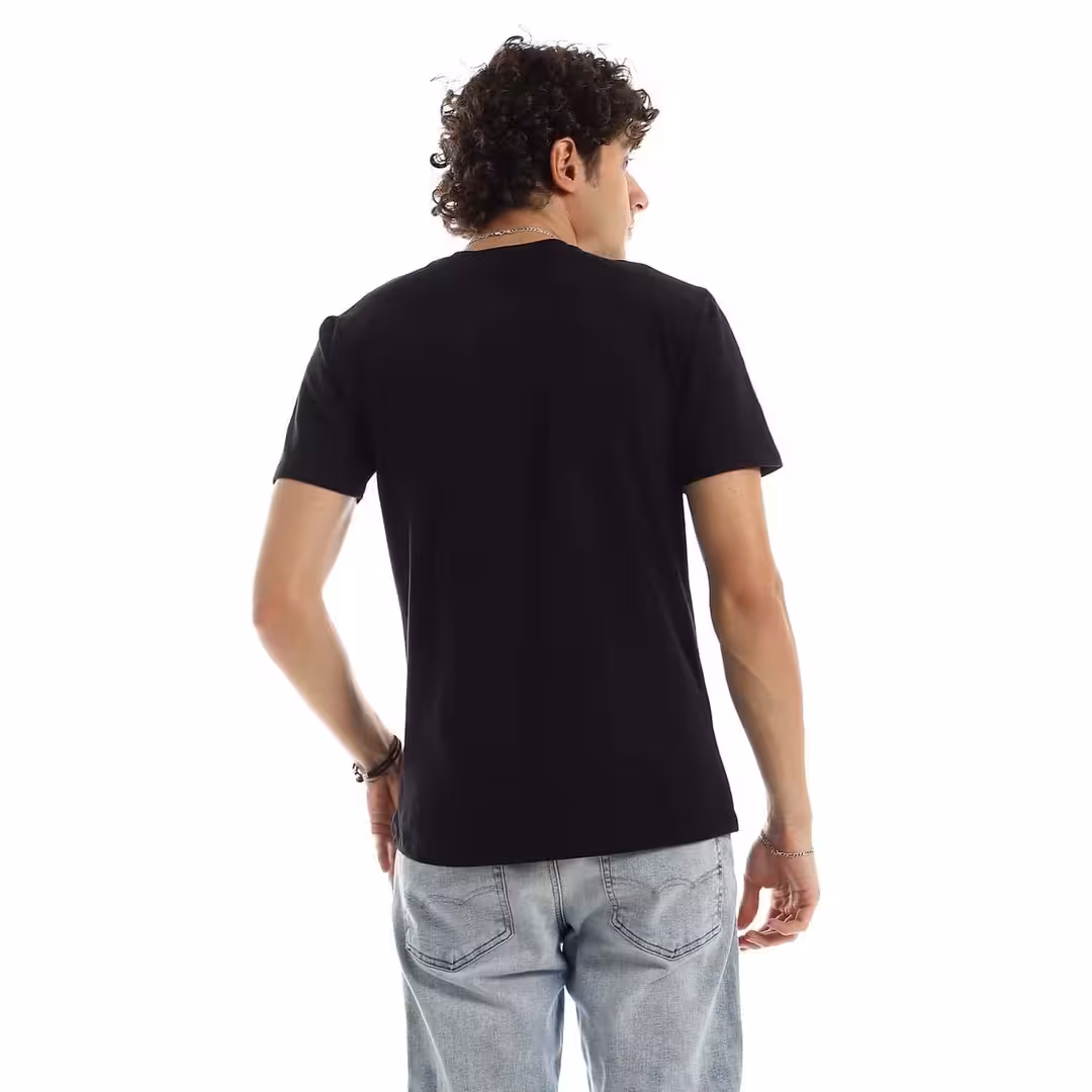تيشرت رجالي نص كم حوض قطن  - اسود