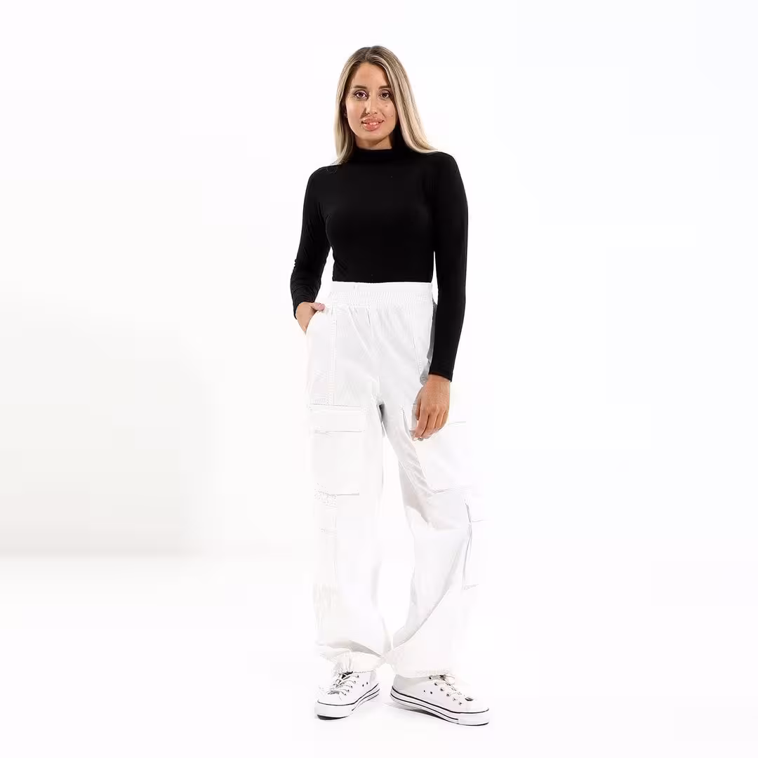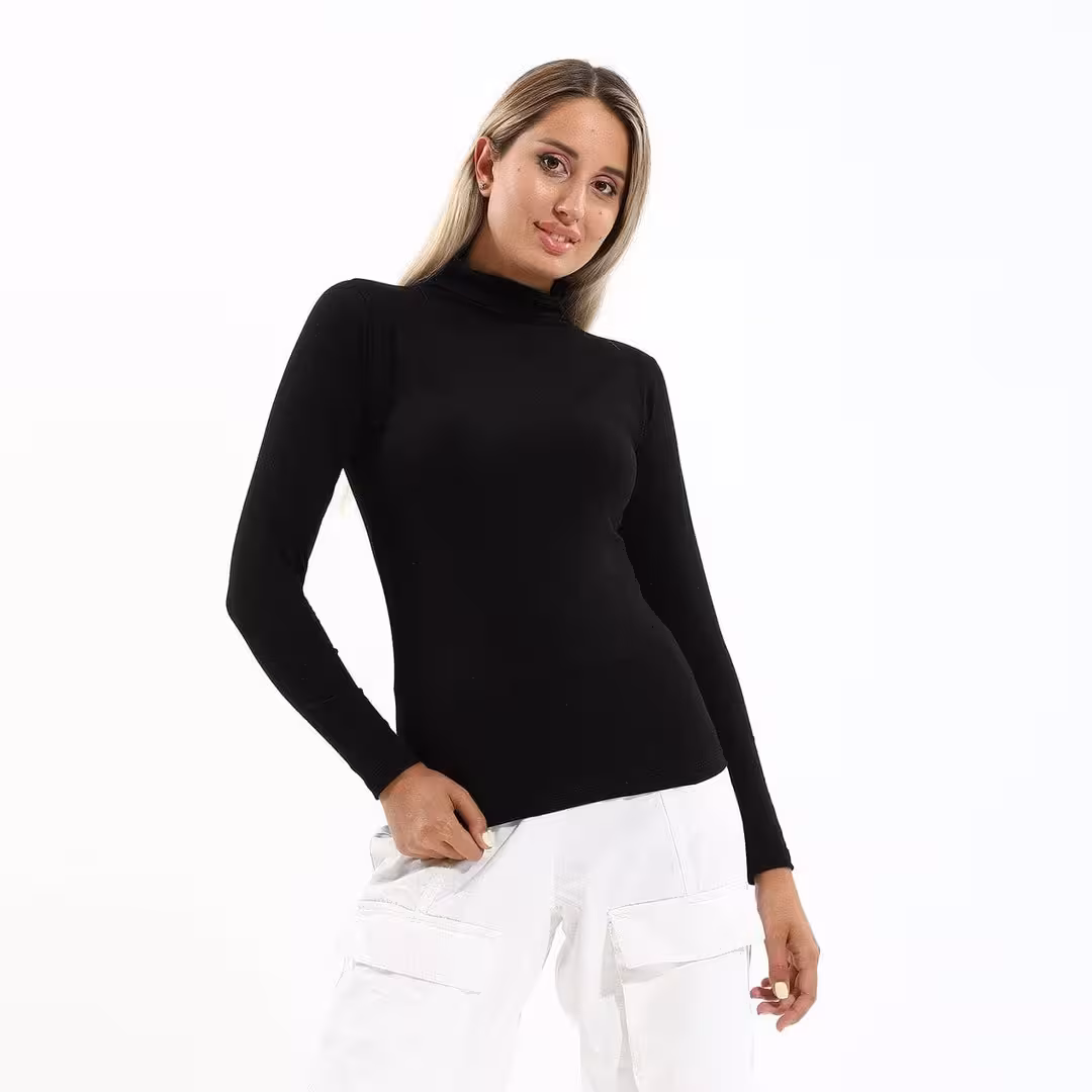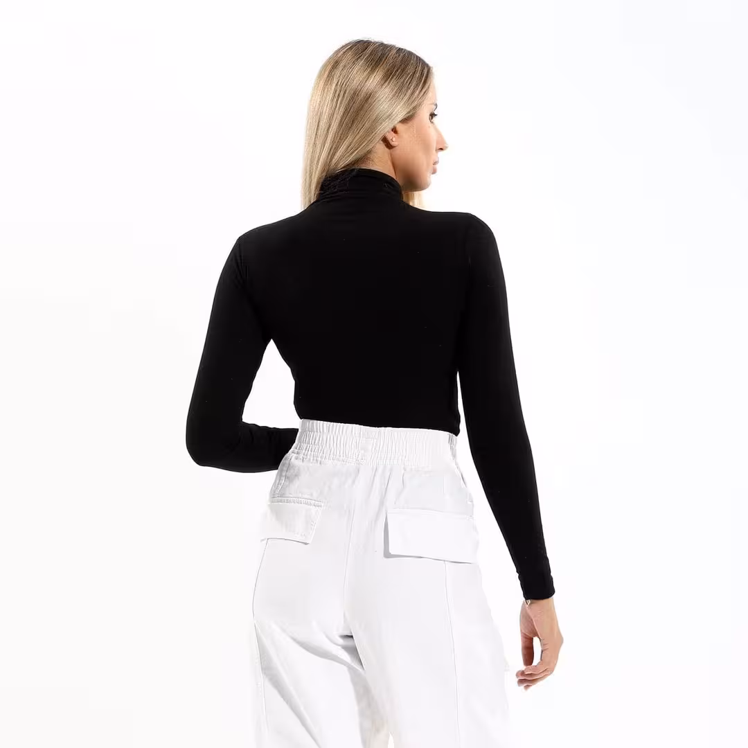 فانله كم طويل رقبة عاليه استريتش - ابيض