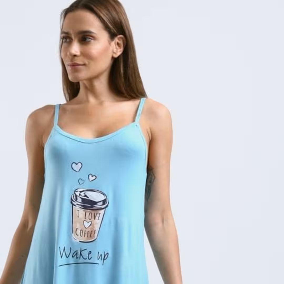 نايت شيرت قطن نص كم استريتش بطبعه -مينت جرين
