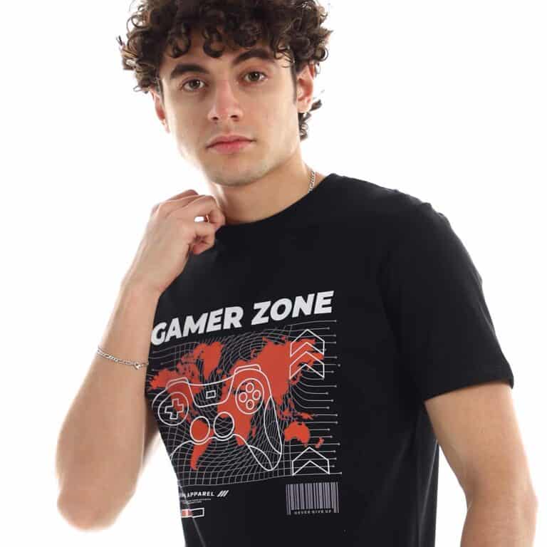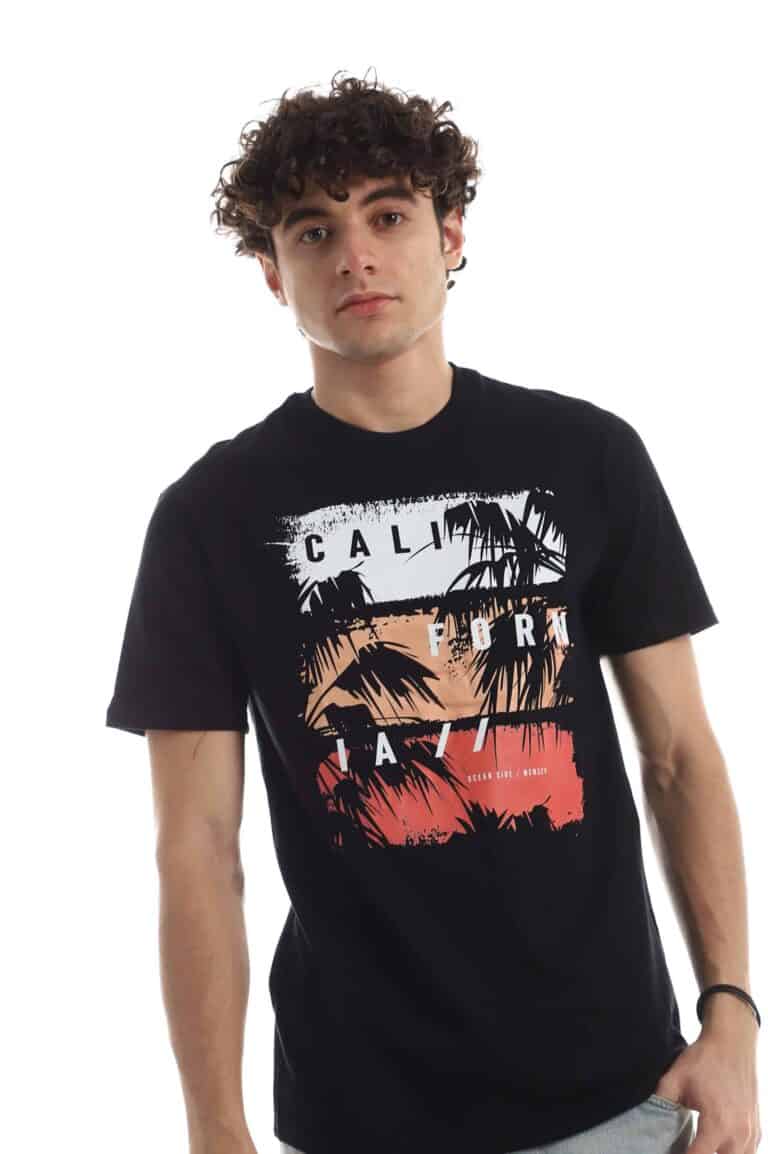 نايت شيرت قطن استريتش حماله رفيعه مطبوع – اسود
