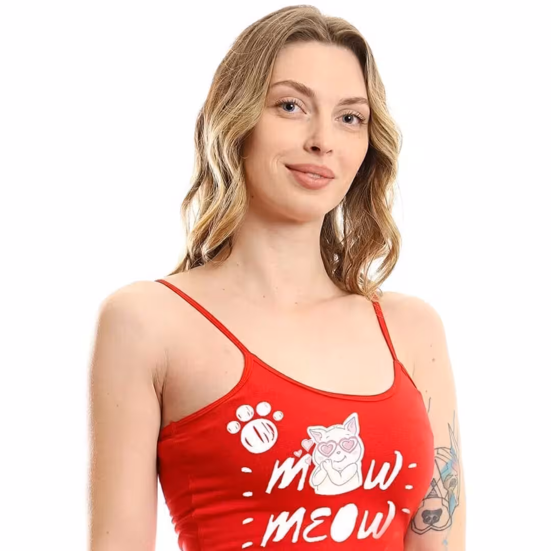 كاش مايو قصير من القطن حماله رفيعه -مطبوع-اسود