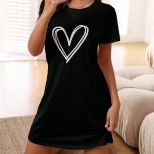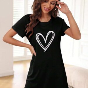 نايت شيرت قطن حماله عريضه استريتش بطبعه – اسود