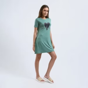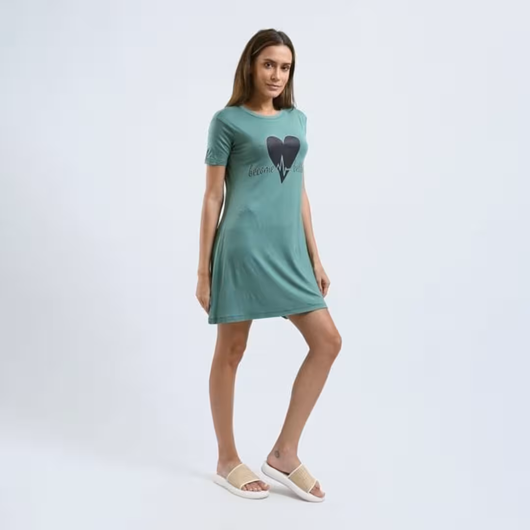 نايت شيرت قطن نص كم استريتش بطبعه -مينت جرين