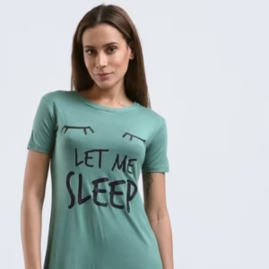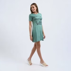 نايت شيرت قطن نص كم استريتش بطبعه -مينت جرين