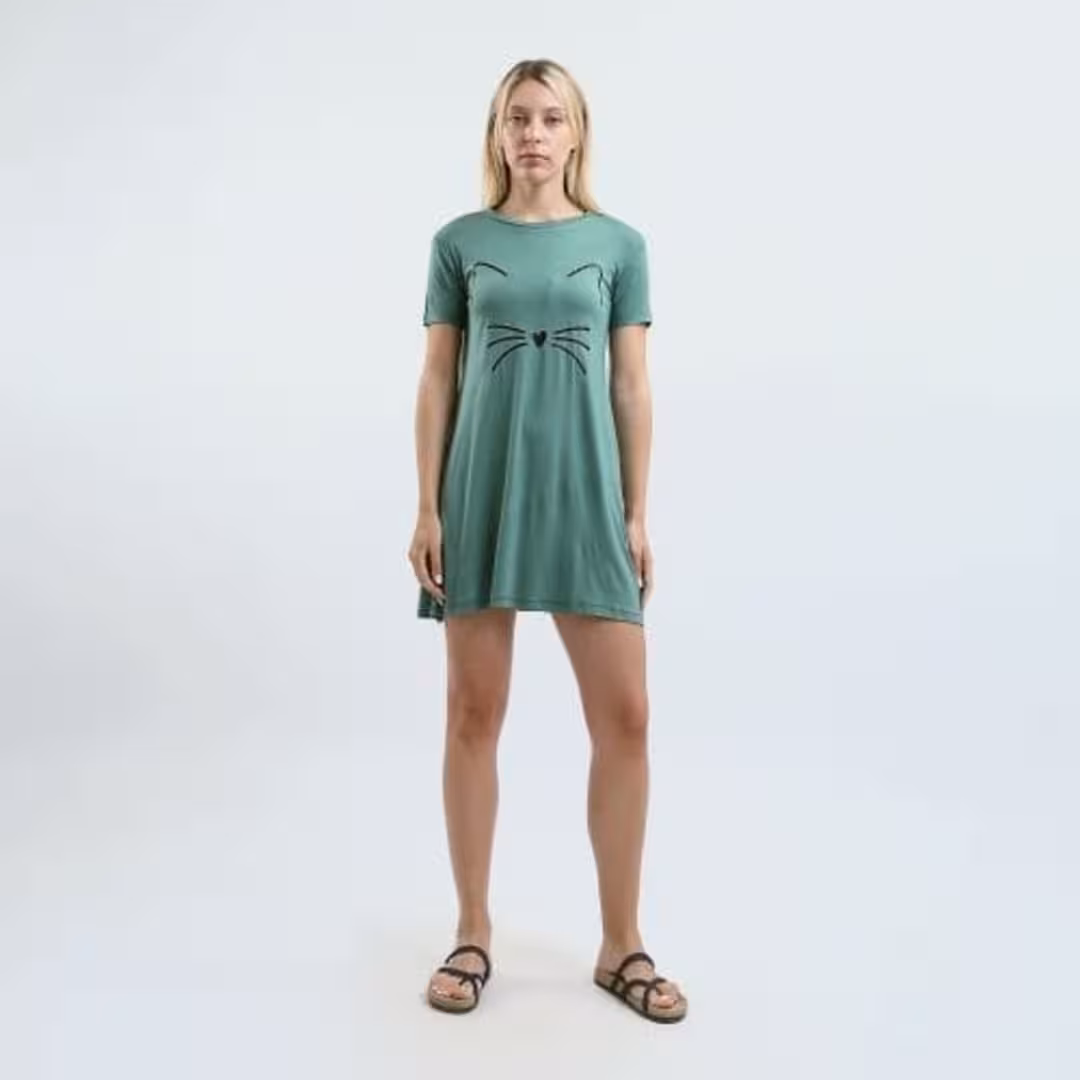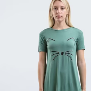 نايت شيرت قطن نص كم استريتش بطبعه -مينت جرين