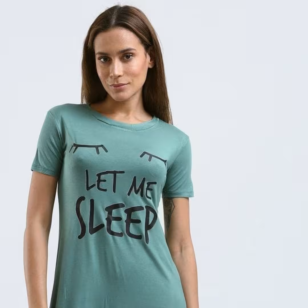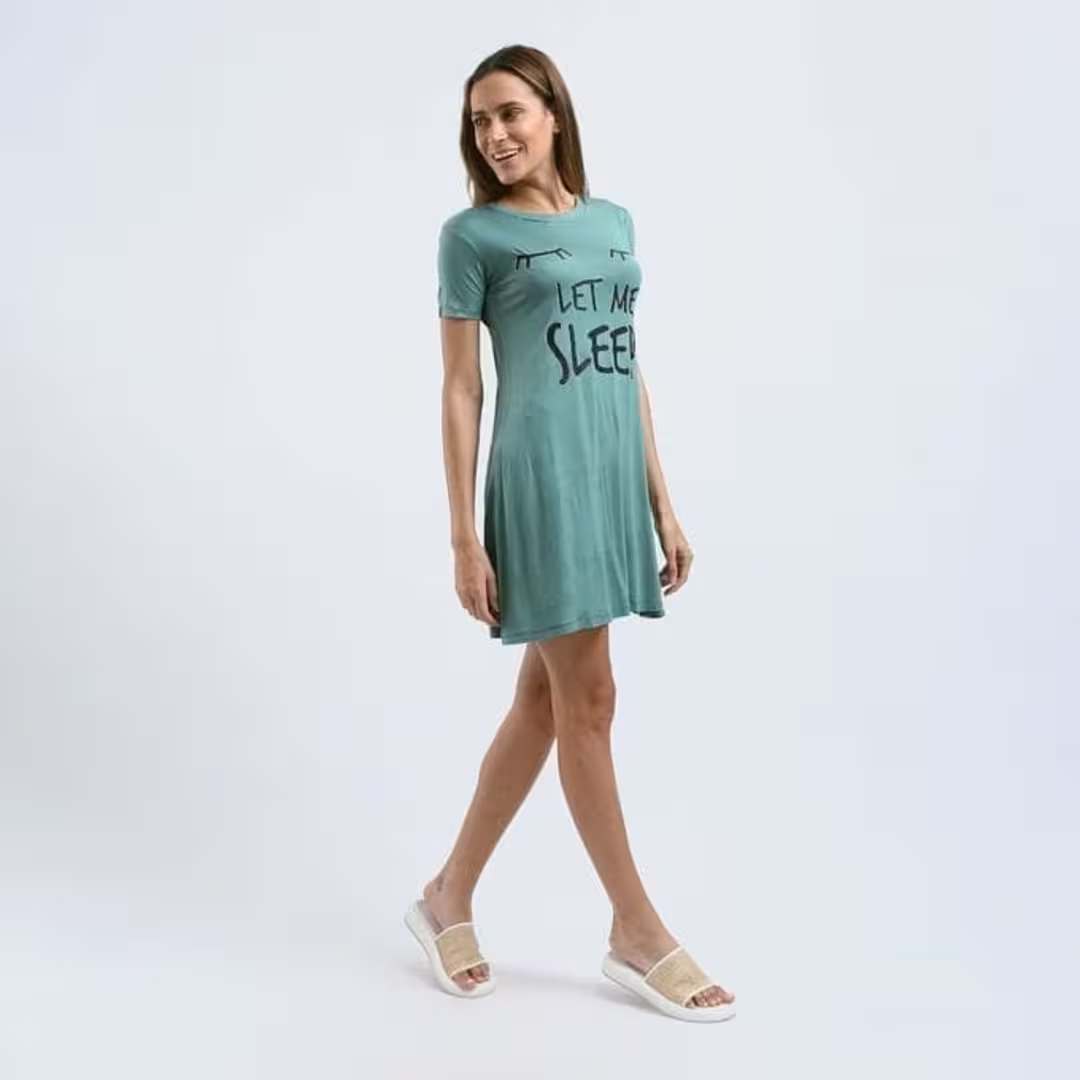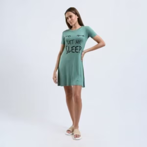 نايت شيرت قطن نص كم استريتش بطبعه -مينت جرين
