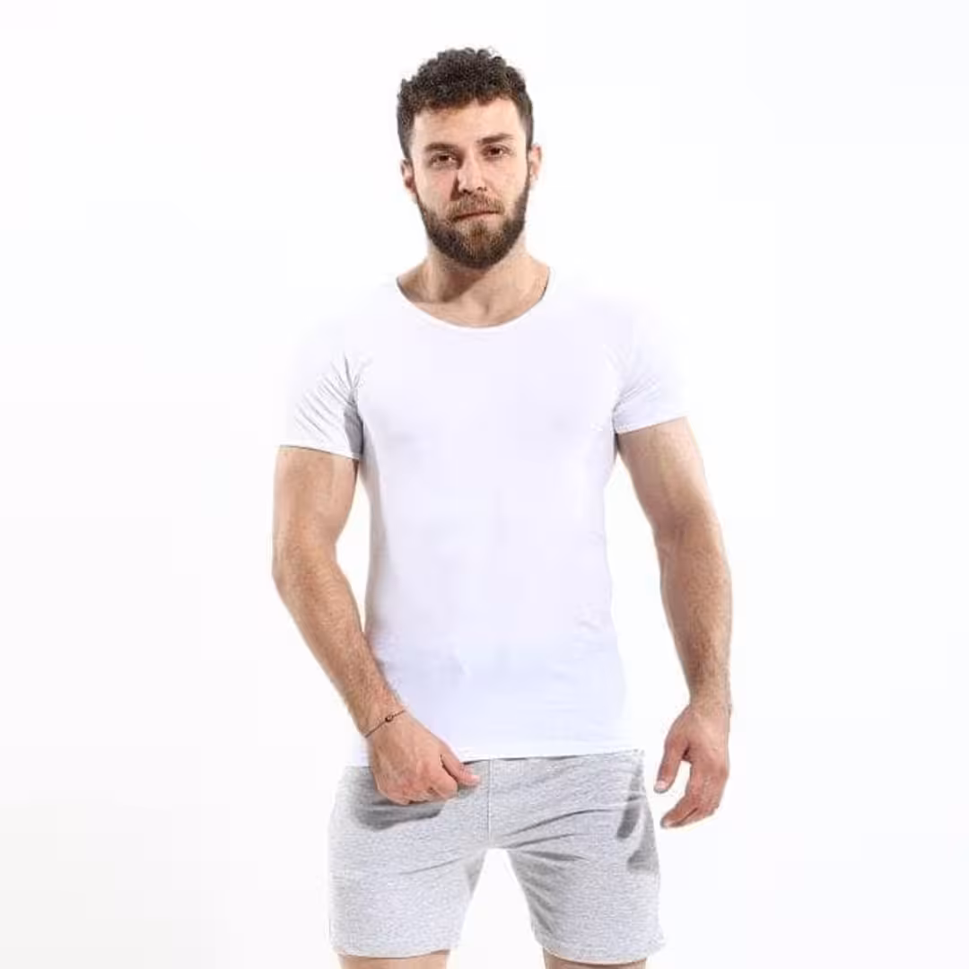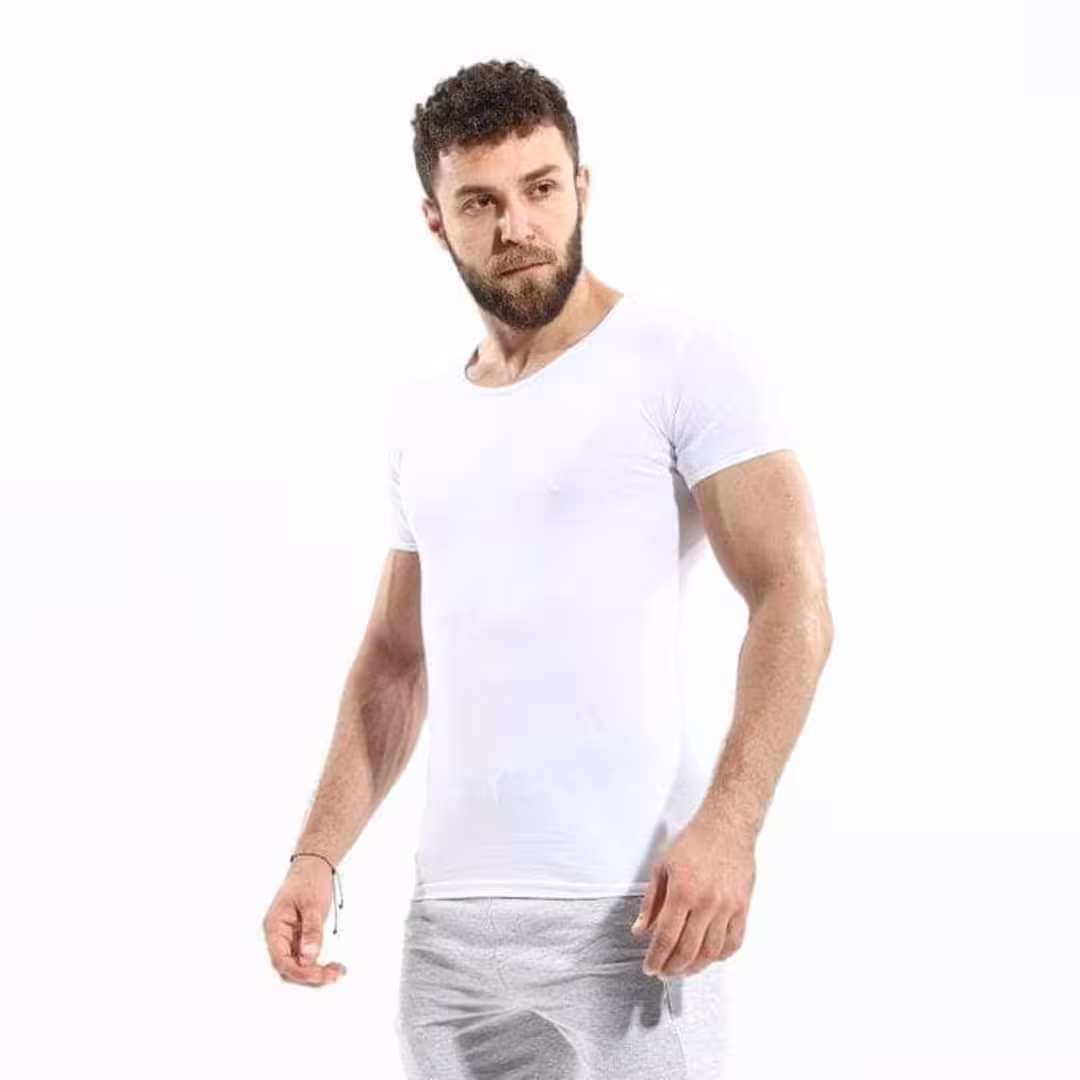 مجموعه من (2) - نصف كم ممشط 100% قطن صافي - ابيض