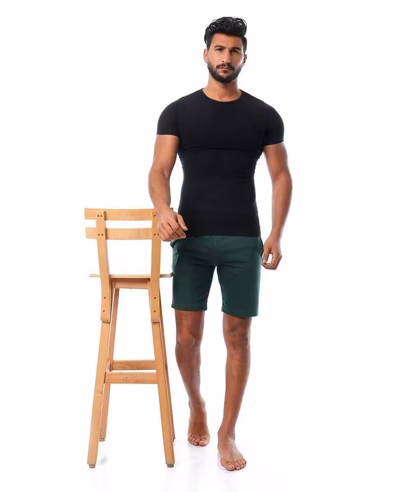 كاش مايو قصير من القطن حماله رفيعه -مطبوع-اسود